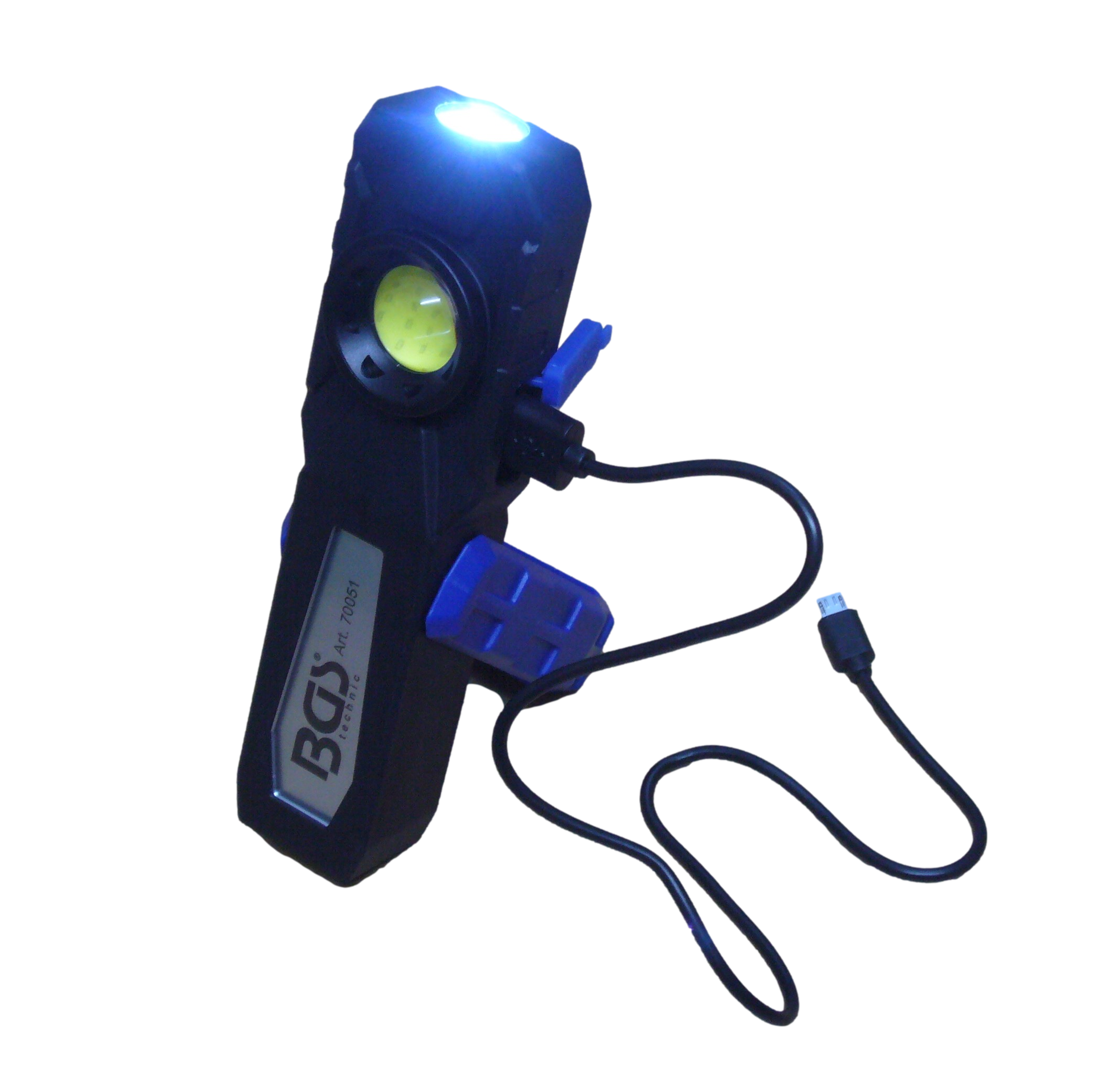 Leuchtstarke sehr robuste Akku-LED-Handlampe mit stirnseitiger und seitlicher sogar dimmbarer Pun...