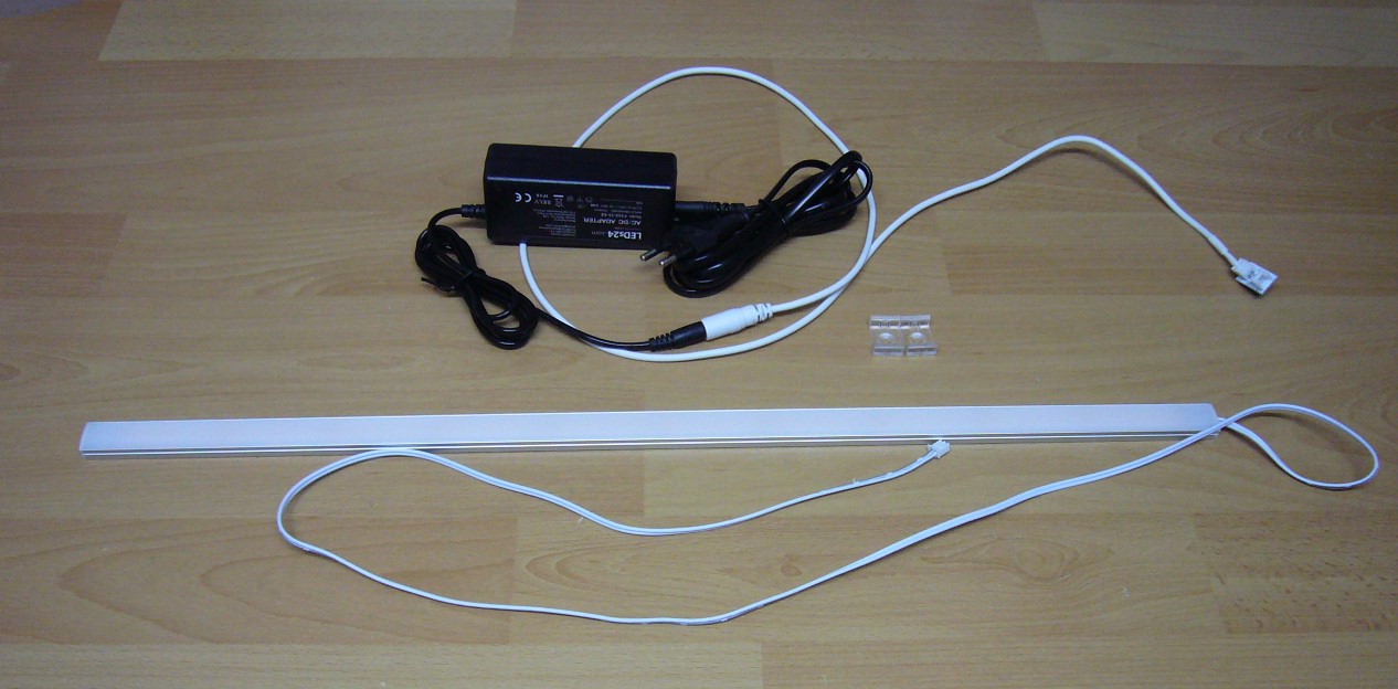 Diese Leuchtschiene kann entweder inkl. Netzteil verbaut werden oder an die Stromversorgung unserer LED-Notenpultleuchten angehängt werden.