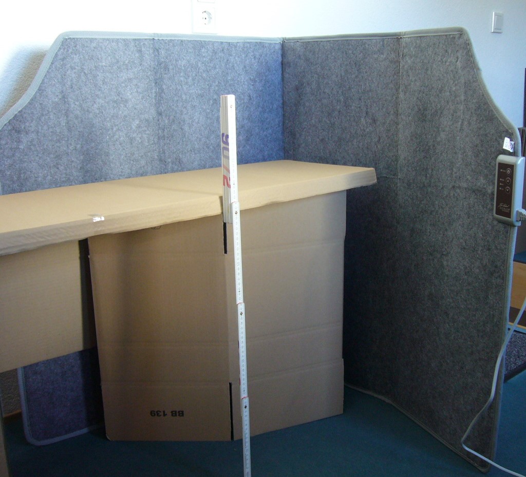 This fabric heating panel is a good and inexpensive way to provide direct heat to the organist. Further good as a supplement especially for the lateral demarcation of the organist's place. The fabric panel can be folded for storage during the non-heating period.