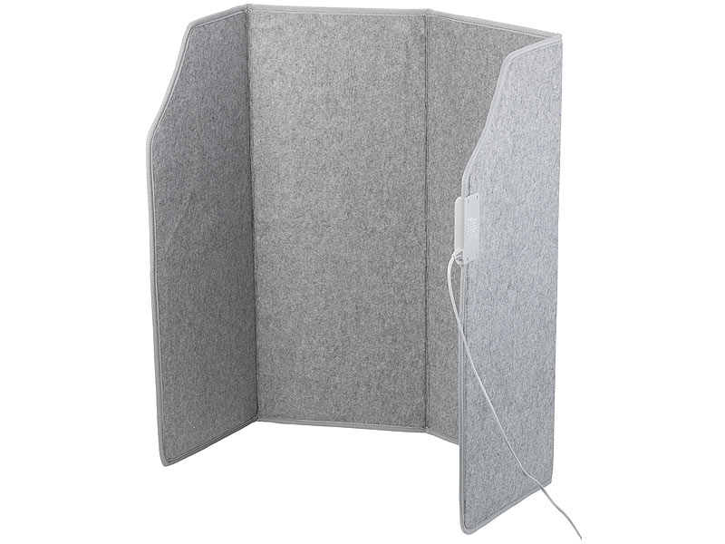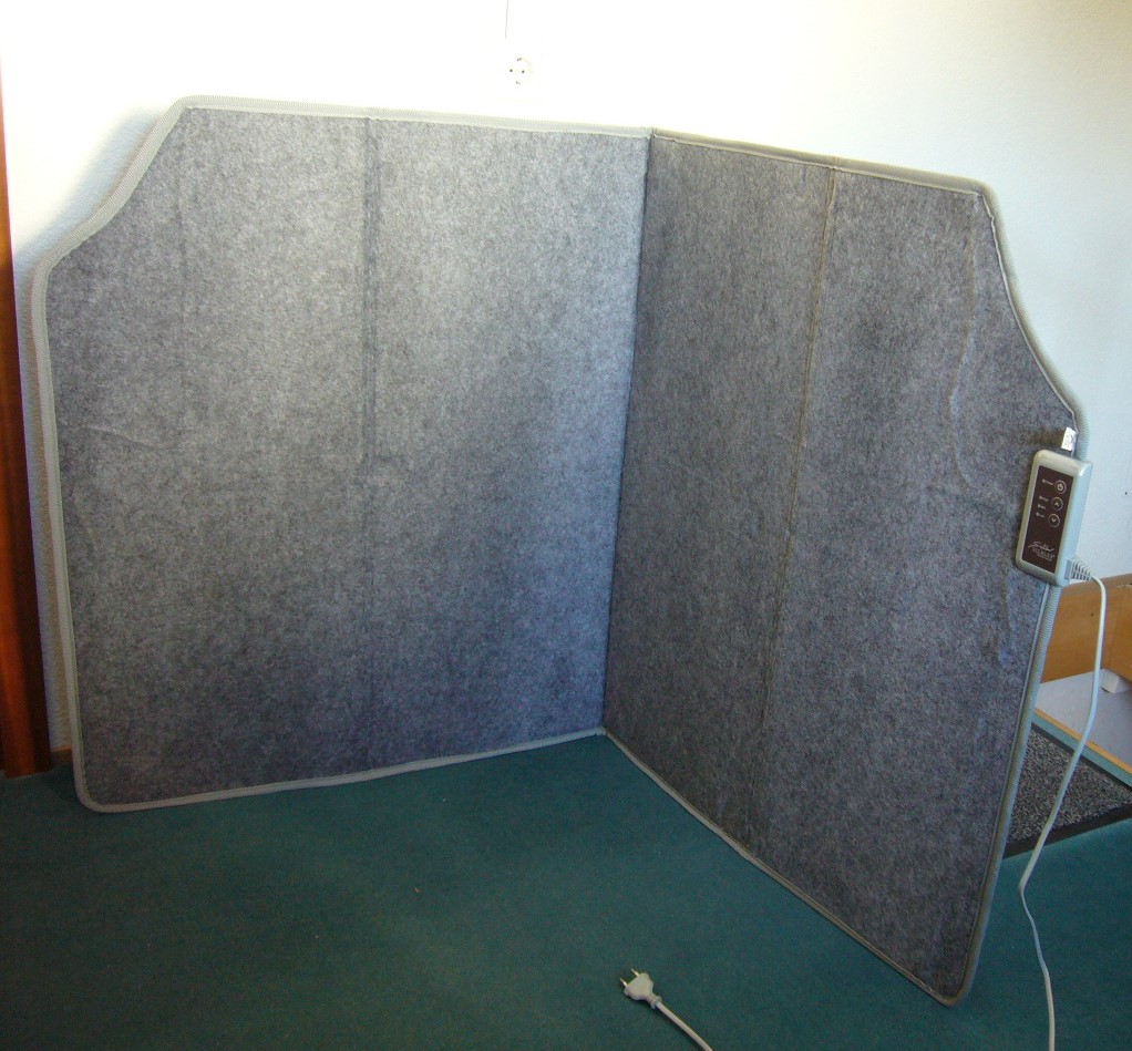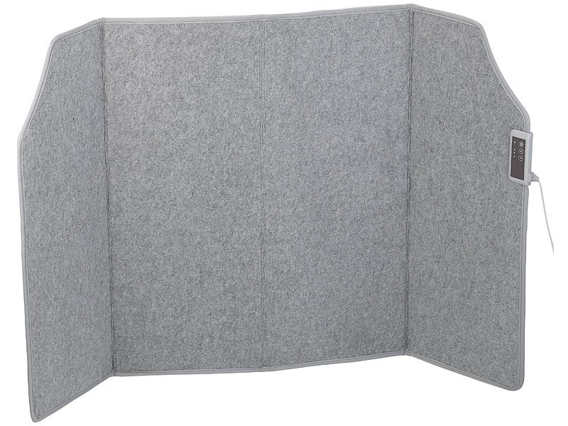 The heating elements are divided into the 4 individual areas and applied to thin plates. All around the panel is covered with insensitive gray upholstery fabric. Unlike our dark infrared heating panels, which are also used in the oak heat screen, this panel is not heat-insulated on the side facing away from the player.