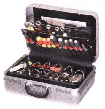 Parat leather cases and tool bags are very popular due to their robust and stable design. For the most diverse uses there are meanwhile shell cases in versch. For different uses there are now shell cases in different sizes and equipment with and without chassis, bags in different sizes and lengths with and without tool receptacles and tool bags. Bags in various sizes and lengths with and without tool holders and drawer inserts for small parts. For quick use or for assembly work on scaffolding or in shafts, Parat also offers a tool backpack.