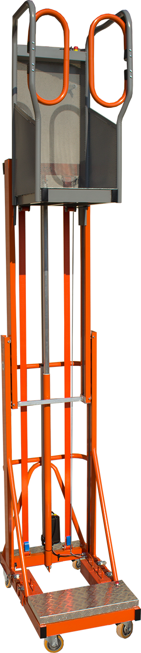 Plattform elektro/hydraulisch verstellbar von Einstiegshöhe bis 3,0 m. Korb für 1 Person plus Werkzeug zus. mit max. 200 kg.