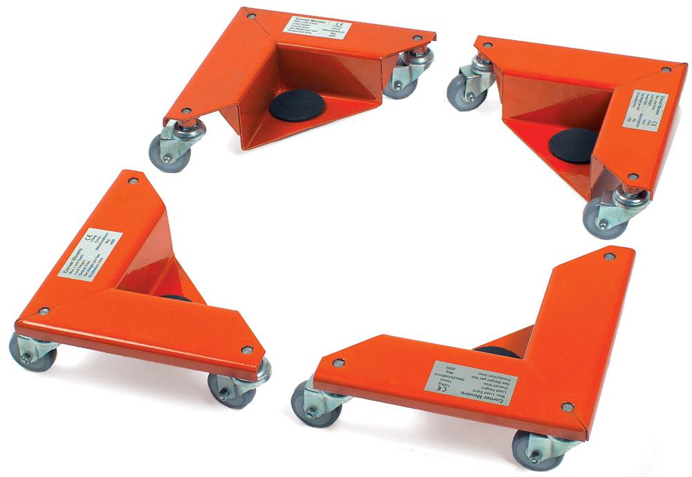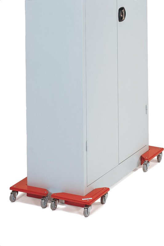 Mit diesen 4 stabilen Eckenrollern aus Stahl mit jew. 3 Stück Lenkrollen und nur 15 mm Unterfahrhöhe, ist das Umsetzen von z. B. Schränken usw. einfach möglich.