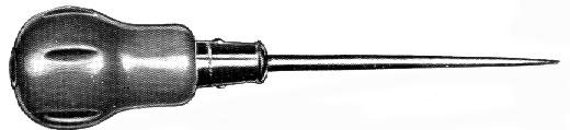 Runder Spitzbohrer mit Kugelheft aus Holz und Schlagplatte. Zum Anstechen von genauen Holzbohrungen oder Anreißen von Linien.