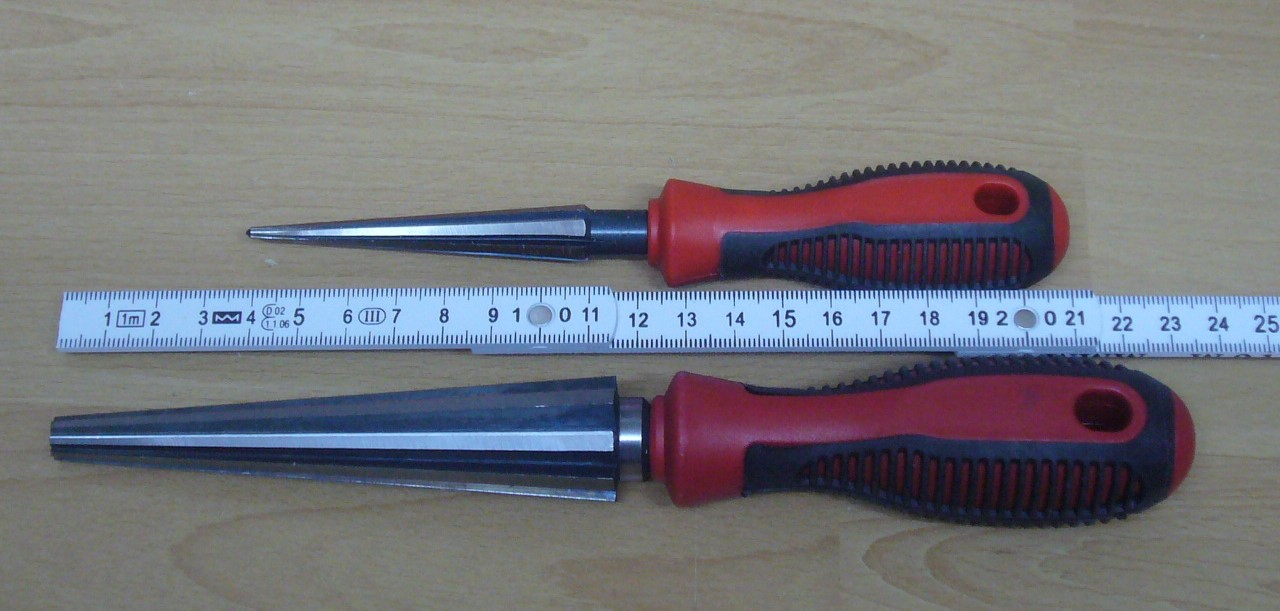 Weiter ist eine kleine Reibahle mit Bitaufnahme aus HSS D= 3 - 7 mm zum Einsatz in der elektr. Bohrmaschine oder einem sep. Bithandgriff lieferbar.