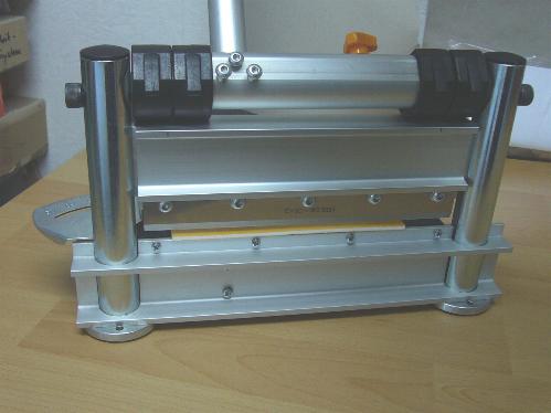 Trotz Eigengewicht von 7 kg ist das stabile Gerät komplett gut transportierbar. Zusätzlich kann der Hebel einfach abgenommen werden. Die auswechselbare und nachschärfbare HSS-Klinge schneidet von Papier bis zu hartem MDF-Material alles. Die parallele Messerführung verhindert ein Verschieben beim Schneidvorgang. Dieser Vorteil wird besonders bei dünnen und weichen Materialien geschätzt und ermöglicht ein exaktes Schneiden auch schmaler Streifen ohne extra Niederhalter.