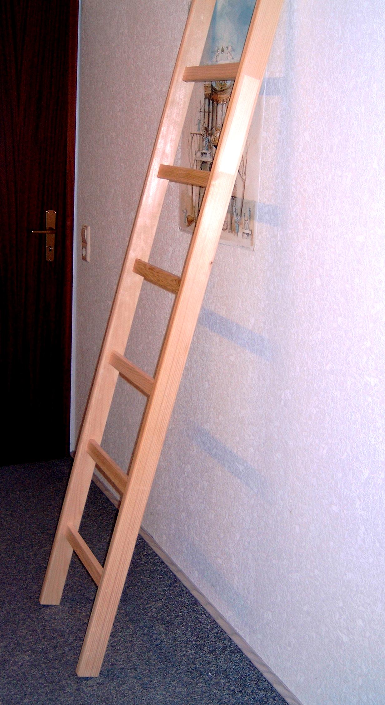 Holzleiter mit Holme aus astfreiem Nadelholz 65 x 25 mm und Sprossen aus Esche 43 x 20 mm. Außenbreite 41,5 cm. Sprossen verdeckt verzapt mit den Holmen, sauber geschliffen und einzeln verpackt. Das unbehandelte Holz eignet sich für verschiedene Oberflächenbehandlungen.