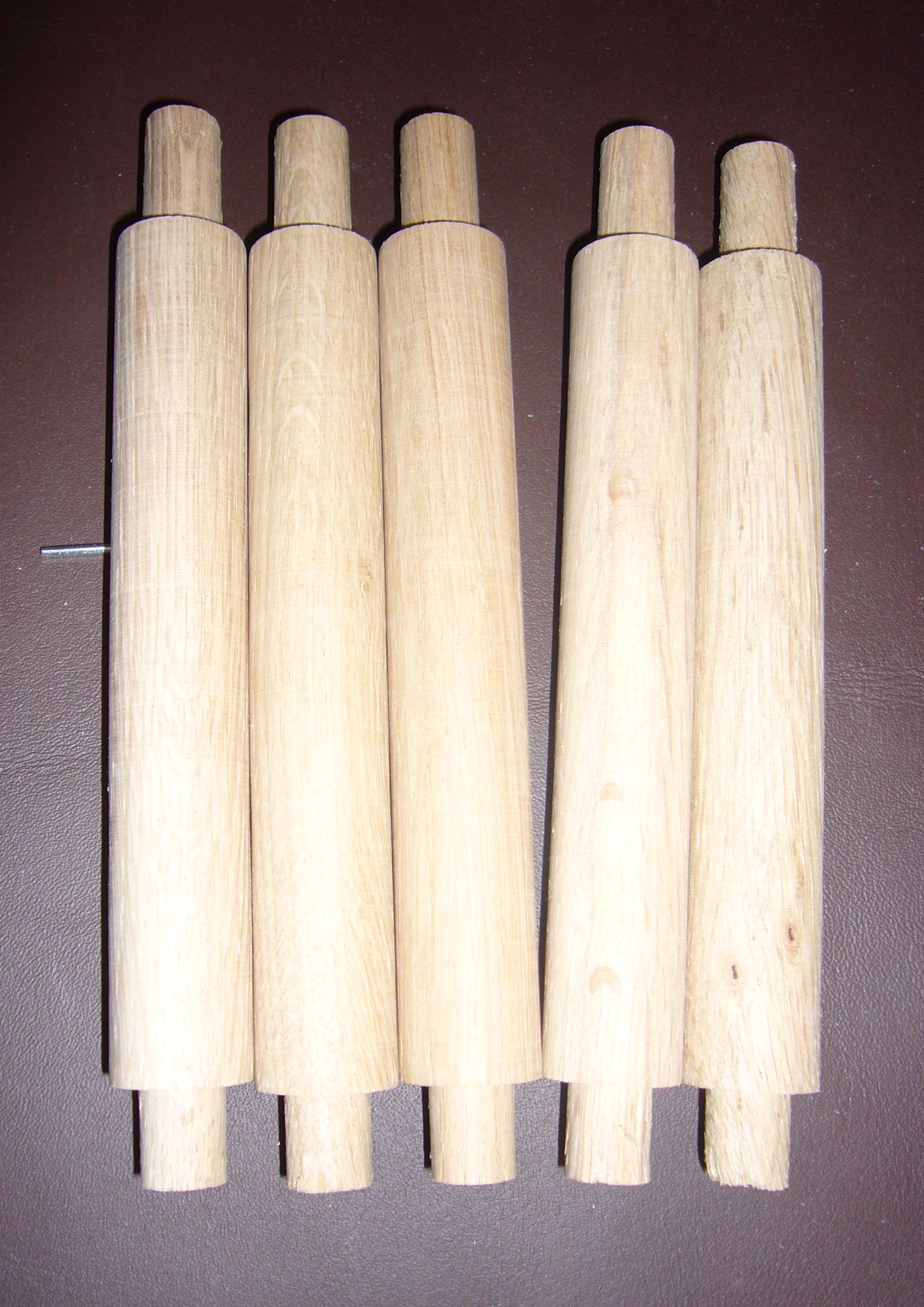 Pfeifenstuhlträger, Rasterstöckchen, Rasterfüße aus Eiche in zylindrischer Form lieferbar.
