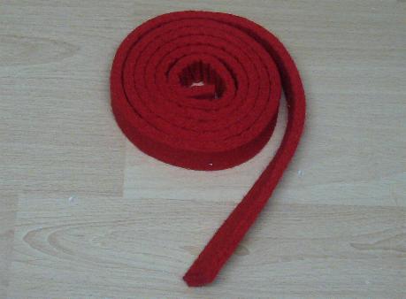 Filzstreifen für die verschiedensten Einsätze aus rotem mittelharten Wollfilz in der Stärke 5 mm.
