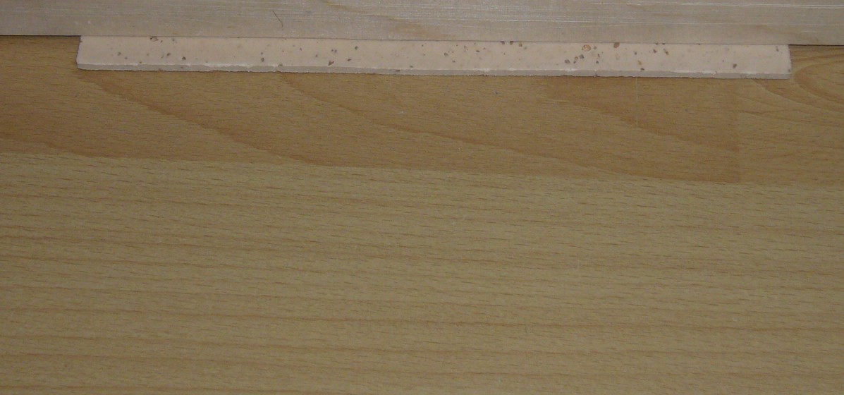 Flächendichtmaterial als EVA Mikrokorkplatte, ideal weil dieses Material in sich dicht und weich ist und ähnlich wie Kork aussieht.