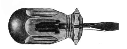 Sehr kurzer Schraubendreher für Schlitzschrauben mit kurzem Kunststoffheft.