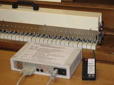 An Orgeln, die über eine elektrische Tonsteuerung verfügen und über MIDI angesteuert werden können, kann dieses hilfreiche Tastendrückergerät auch ohne Magnetaufsatz geliefert werden. Bitte fragen Sie uns nach den Möglichkeiten und dem Preis, der deutlich unter der Hälfte des Komplettgerätes liegt. Möglich ist diese Ausstattung auch als feste Stimmhilfe beim Zungenstimmen oder für den Orgelstimmer bei der Hauptstimmung.