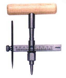 Verstellbarer Scheibenschneider zum einfachen Ausschneiden von z. B. Metallpfeifenschablonen aus dünnem Polystyrol oder Pappe.