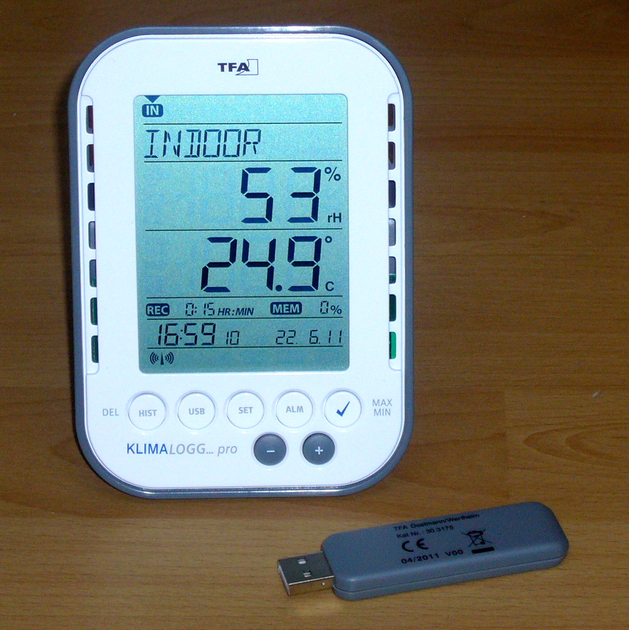 Eine günstige Alternative zur Sichtbarmachung der aktuellen Werte und Daueraufzeichnung von Temperatur und rel. Luftfeuchte direkt mit dem Hauptgerät und mit evtl. zusätzlichen Fühlern und Datenübertragungsmöglichkeit auf einen PC für die Erstellung von Diagrammen oder Listen zur Auswertung.