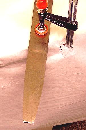 Werkzeug zur Ausarbeitung von Metallpfeifenlabien. Polierte ebene Stahlfläche an der Gegenseite zur Stabilität halbrund verjüngt von 38 auf 15 mm.
