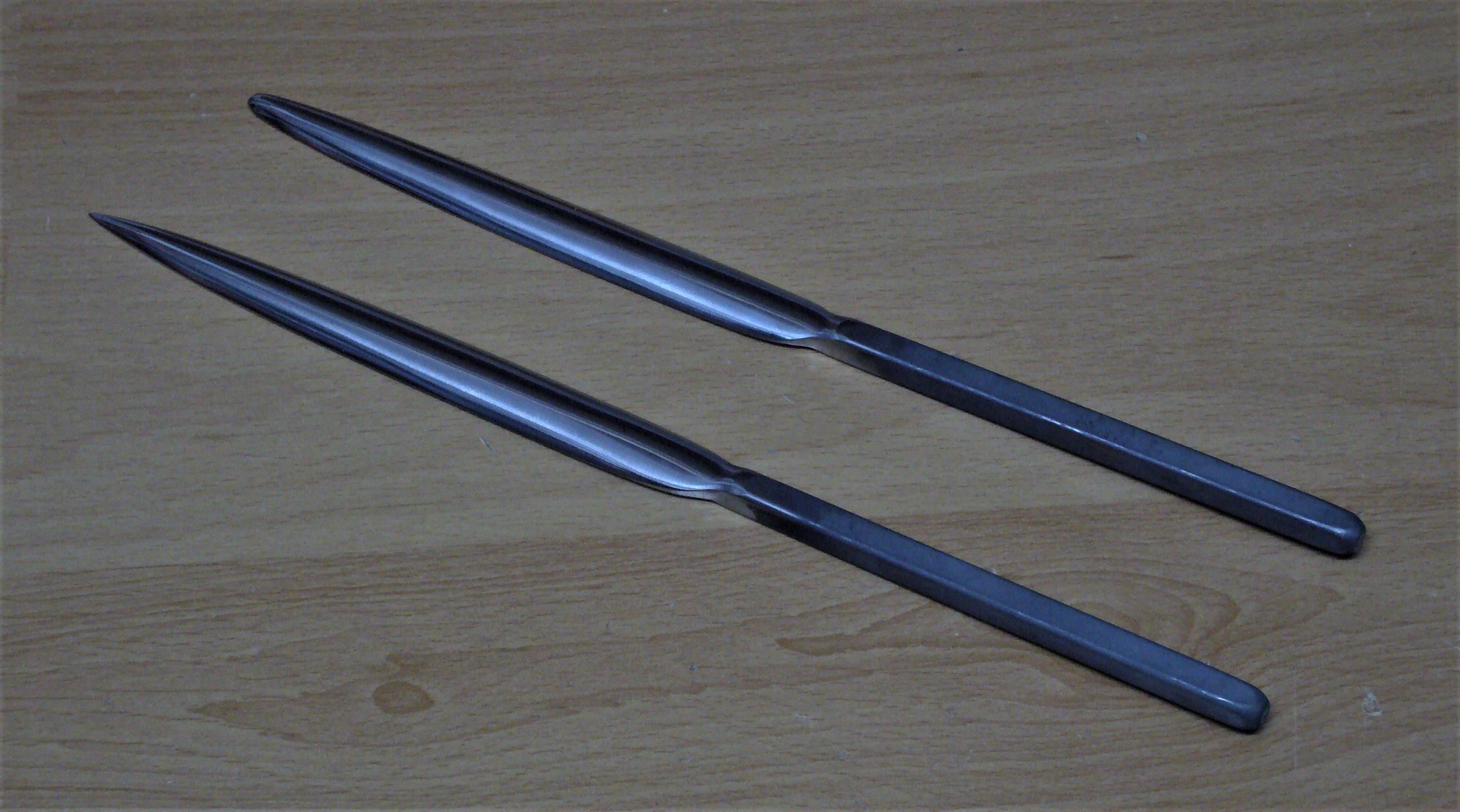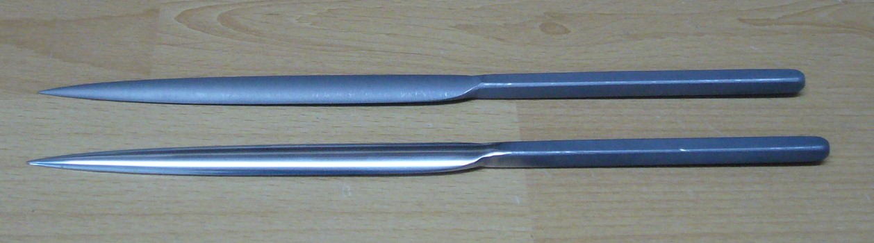 Beide Polierstahlvarianten mit scharfer Spitze oder einen davon vorne abgestumpft, sinnvoll für das Austreiben von Rundlabien.