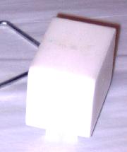 Salmiakstein zum Reinigen von Lötspitzen. Dazu den heißen Lötkolben kurz auf den Salmiakstein drücken. So löst sich eine kleine Menge Salmiak und bewirkt die Reinigung.