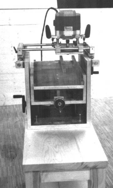 Ihre vorhandene Handoberfräse (beliebiges Modell) wird auf den in einem kugellagergeführten Kreuzsupport gelagerten Tisch befestigt und ermöglicht das geführte Fräsen über den gesamten Arbeitsbereich. Im Unterbau befindet sich ein schrägstellbarer Materialaufnahmetisch. So sind parallele Fräsungen als auch schräg ins Material eintauchende Fräsungen möglich.