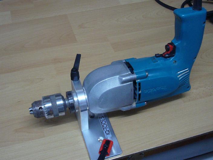 Für Montagezwecke von z. B. Muttern auf Gewinde, Vormontage von Schrauben, Aufbohren von kleinen Löchern usw. ist so eine Einspannvorrichtung eine große Hilfe. Die meisten Elektrobohrmaschine verfügen über eine zylindrische Normaufnahme mit ca. 43 mm direkt hinter dem Bohrfutter.
