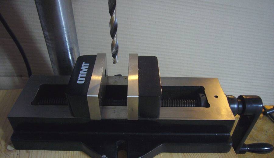 Einmal auf der Ständerbohrmaschine mittig eingerichtet, können Werkstücke bis 100 mm Breite eingespannt werden. Geschliffene und glatte Schraubstockbacken 75 mm lang und 35 mm hoch, ermöglichen ein Spannen ohne Druckstellen.