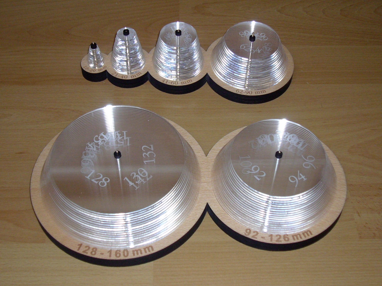 Großes Schablonenset D= 92 - 160 mm x 2 mm steigend inkl. Ständer