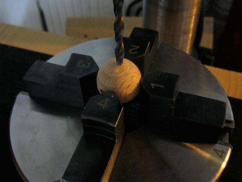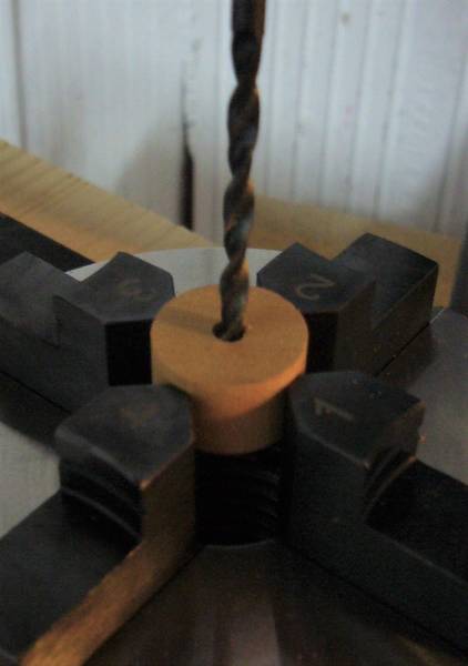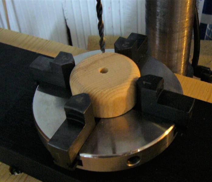 Vorrichtung besteht aus einem 4-Backen-Spannfutter zum Aufspannen auf den Tisch der Ständerbohrmaschine. Ideal für das Bohren von größeren Leder- oder Holzmuttern, Mechanikteilen, Stirnbohrungen von Stechern (lange Stecher können nach unter den Tisch durchgesteckt werden), alle Größen von Kegelventilen usw. Aber auch Wippen und Holzmechanikteile können für immer exakte Mittenbohrungen mittels der gegenläufigen Backen gespannt werden.