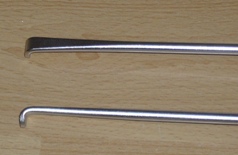 Das als Harmonium-Zungenzieher bekannte Werkzeug ist auch in der Metallpfeifenintionation hilfreich z. B. für das Richten von Oberlabien an großen Metallpfeifen.