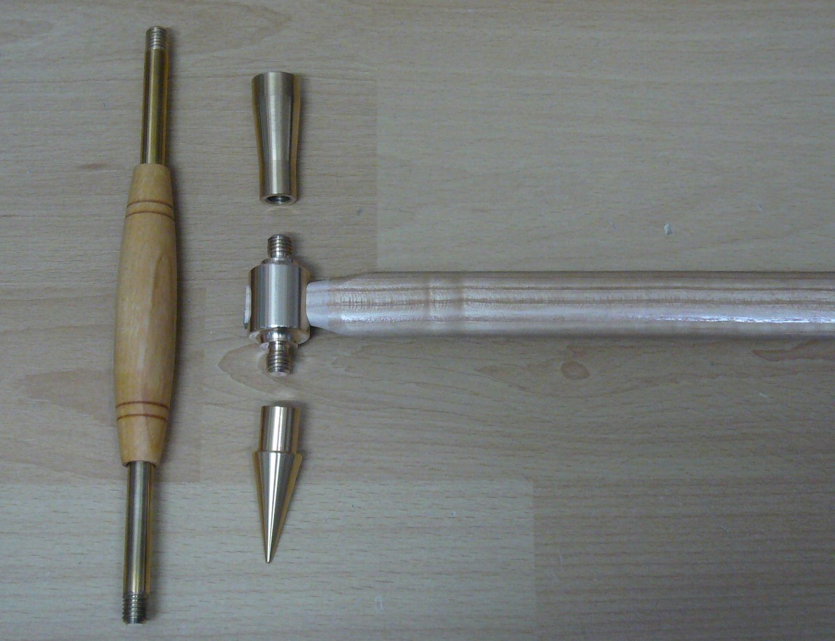 Messingteil mit Gewindeansatz für die versch. Stimmhorngrößen inkl. Hammerstil ca. 400 mm lang
