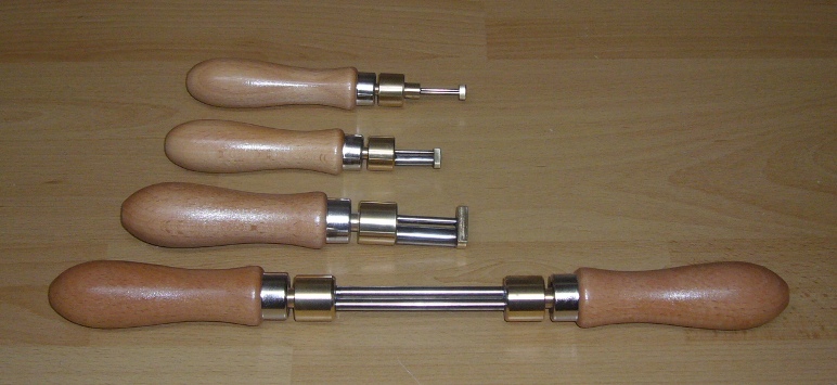 Zungenblätter der verschiedensten Größen und Stärken können mit diesem Spezialwerkzeug "System Jann" bearbeitet werden.