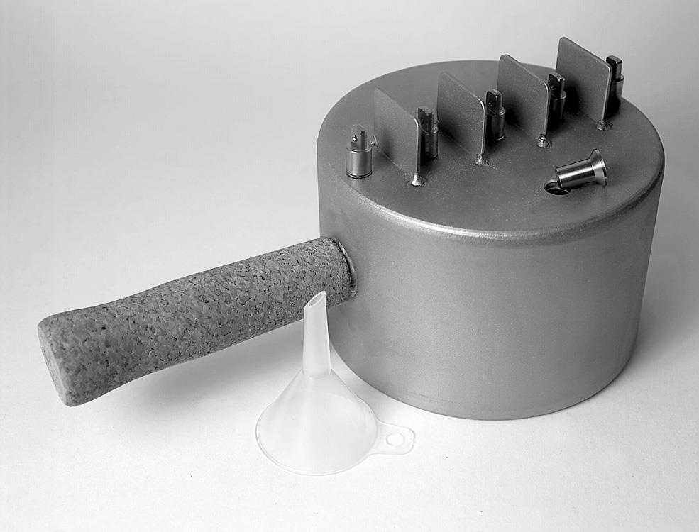 Mit diesem Spezialgerät erreichen Sie ein schnelles und sauberes Ablösen von Tasten-Garnierfilzen oder Ledergarnierungen mit Wasserdampf. Das Gerät ähnelt einem Schnellkochtopf, den Sie auf eine Heizplatte stellen. Auf die 5 Düsen stecken Sie die entsprechenden Tastenteile und der Dampf erreicht punktgenau die zu lösende Garnierung an der Vorderstiftführung oder am Achsstift.