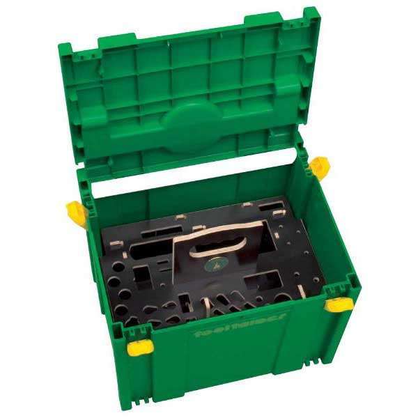 Tooltainerbox mit herausnehmbarem Werkzeugträger, bestückt mit 28 Qualitätswerkzeuge für den Bereich Innenausbau.